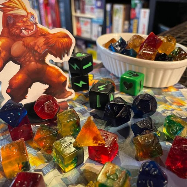 house-made gummy dice candy