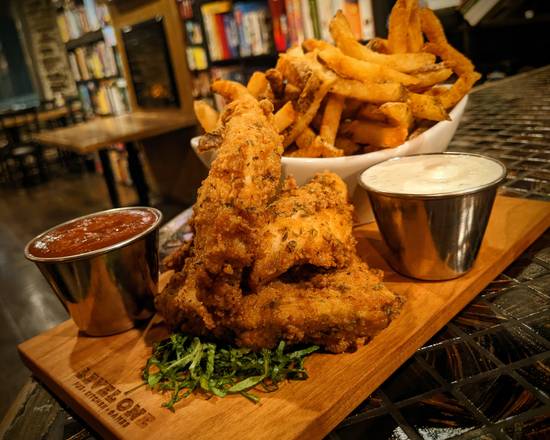 our house-made buttermilk chicken tenders served choice of sauce: house ranch, hot, chipotle mayo, BBQ, or sweet chili thai, served with choice of fries, greens or half & half