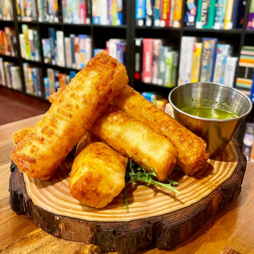 fried halloumi sticks served with chimichurri dipping sauce