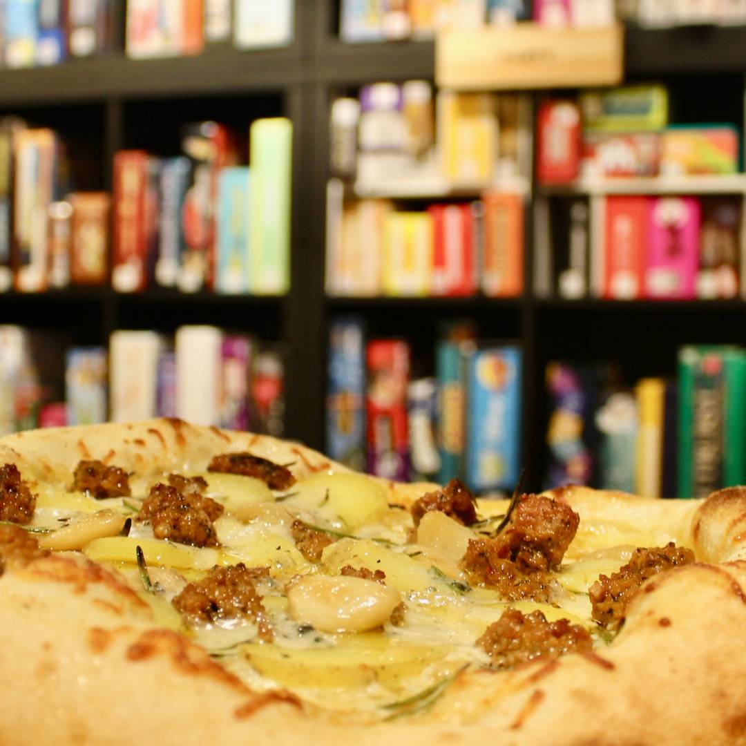 olive oil base, mozzarella, sliced potato, garlic, spicy Italian sausage, gorgonzola, topped with rosemary and chili oil