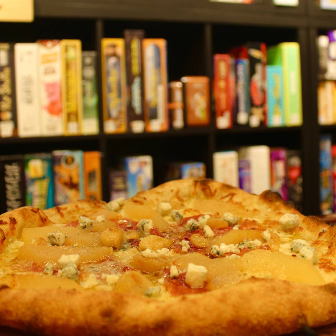 olive oil base, mozzarella, roasted pear, prosciutto, gorgonzola, garlic, drizzled with spicy honey