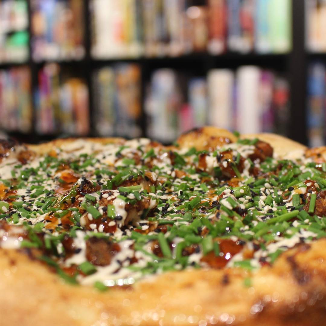 sweet chili thai base, mozzarella, crispy chicken, drizzled with house ranch, topped with toasted sesame and green onions